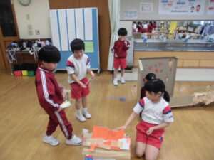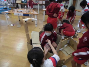 【1年生】うきうきあきランド 2025年12月1日 1年生, お知らせ・トピックス, 学年の部屋 1年生は、生活科でうきうきあきランドをしています。今日は、今までつくったおもちゃで遊び合う時間でした。うきうきしたことを書いて表現できるようになってきました。