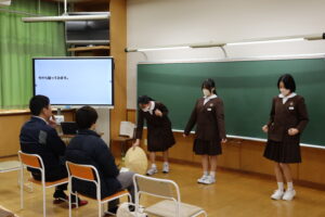 【2年生】砺波ライオンズクラブと青少年育成南砺市民会議城端支部の方々とあいさつ運動 2025年11月26日 2年生, お知らせ・トピックス, 学年の部屋 今週は、2年生と企画・運営委員会が中心となってあいさつ運動をしています。11月26日(水)の朝は、砺波ライオンズクラブと青少年育成南砺市民会議城端支部の方々と一緒にあいさつ運動をしました。元気いっぱいの声で、目を合わせてあいさつをする姿が見られました。