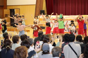子供たちは、保護者や地域の方の笑顔を生み出そうと、これまでの練習の成果を発揮し、テーマの通りの最高のステージ発表ができました。