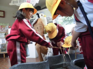 【1年生】ねいの里であきみつけ 2025年10月21日 学年の部屋 1年生はねいの里へ行ってきました。秋の生き物や工作を職員の皆さんに詳しく教えていただきました。生活科の学習を生かし、虫をとったり、説明を真剣に聞きたりました。どんぐりの種類を詳しく知ったり、遊び方を見たりして、これからの学習に生かしていきます。施設のルールを守ったり、集団の決まりを意識したりする様子もありました。