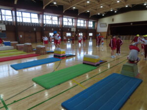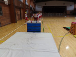 【4年生】 跳び箱運動 2025年12月12日 4年生, お知らせ・トピックス, 学年の部屋 4年生は体育科の学習で、跳び箱運動に取り組んでいます。開脚跳びや台上前転のような昨年学習したものから、今年から新たに学習するかかえこみ跳びや首はね跳びの練習をしています。自分の跳び方を友達にタブレットで撮影してもらい振り返りながら、技のレベルを上げています。