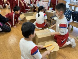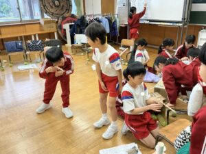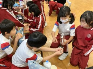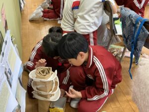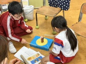 おもちゃランドを開催しました!(国語科・生活科) 2025年12月17日 2年生 2年生はこれまでに、友達が国語の学習で書いたおもちゃの作り方の説明文から、自分が作ってみたいおもちゃを作ってきました。そして、おもちゃが完成したのでみんなで遊びました。説明文をよく読んだり作った友達に遊び方を聞いたりして、楽しく活動ができ、子供たちは満足げな様子でした。
