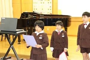 2学期終業式 2025年12月22日 お知らせ・トピックス 12月22日(月)に、2学期の終業式を、感染症拡大予防のため、リモートで行いました。1、3、5年生の代表児童が、2学期にがんばったことや3学期にがんばりたいこと等を発表しました。その後、校長先生の話を聞きました。明日から冬休みです。進んで学習や運動、手伝い等に取り組みましょう。