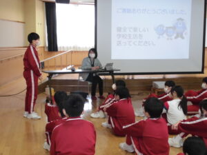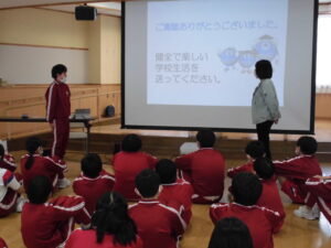 【6年生】薬物乱用防止教室 2026年1月23日 6年生, 学年の部屋 砺波厚生センターから講師をお招きし、たばこやアルコール、薬物乱用による健康への影響について講演いただきました。「聞いたことはあったけど、想像以上にこわいな」「市販薬も使い方を間違えると危ないと知った」「自分には関係ないと思っていたけど、身近に潜んでいるから気をつけたい」と振り返り、薬物乱用の怖さを実感した様子でした。