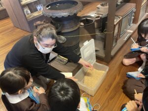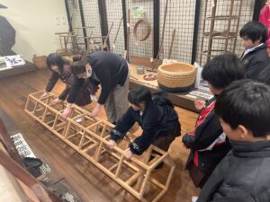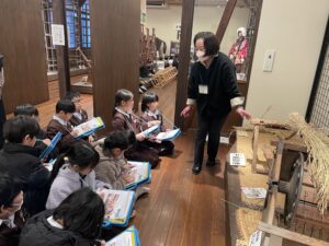 【3年生】散居村ミュージアム〈民具館〉へ行ってきました 2026年1月23日 3年生, お知らせ・トピックス, 学年の部屋 3年生は、社会科「道具とくらしのうつりかわり」の学習で、砺波市にある散居村ミュージアムの民具館へ見学へ行きました。黒電話やブラウン管テレビ、二層式洗濯機など、昭和時代の道具に触れることができ、子供たちは嬉しそうな様子でした。農作業や料理、洗濯などの道具が昔から変わってきたことで、人々の暮らしが便利になったことを知ることができました。子供たちは一生懸命話を聞いてメモを取っていました。学芸員の方に、話を聞く態度のよさや、積極的に質問をする姿勢をたくさん褒めていただきました。