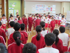 【4・5年生】合同歌練習 2026年2月4日 4年生, 5年生, お知らせ・トピックス 3日(火)のランランタイムに、卒業式に全校で歌う「友達でいようね」の合唱練習を行いました。4・5年生が2部を担当するため、よりよい歌声になるように、お互いの歌を聴き合い、良いところを伝え合ったり、アドバイスを出し合ったりしました。