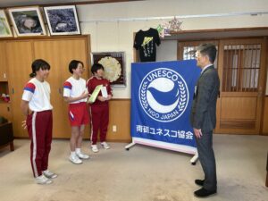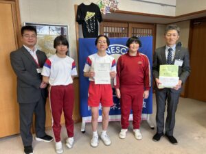 書き損じはがき受け渡し、感謝状授賞式 2026年2月4日 学年の部屋 企画運営委員会では、1月に書き損じはがきを集めました。全校のみなさんの協力のおかげで166枚のはがきが集まりました。北野地域づくり協議会からも47枚の書き損じはがきを提供していただきました。集めたはがきは、お金に変わり世界の子供たちの学びに役立てられます。また、前回の赤い羽根募金の活動に対しては、南砺ユネスコ協会から感謝状をいただきました。