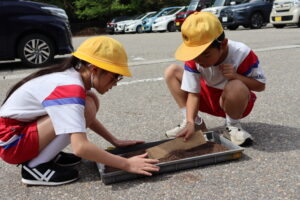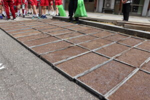 【5年生】済美の学習 田んぼの学校 苗箱作り 2026年4月28日 5年生, お知らせ, お知らせ・トピックス, 学年の部屋 4月28日(火)の済美の時間で苗箱作りを行いました。 土を慣らして均等に種もみを植える中で「一粒も無駄にしたら駄目だよ」とお互いに声をかけながら慎重に苗箱を作ることができました。 これから毎日仕事ととしてお米を育てていく気持ちをより一層高めました。
