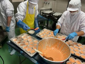 このケーキの中に、りんごやドライフルーツなどを入れてもおいしいです。去年は干し柿を入れて提供しました。ぜひ親子で作ってみてください。