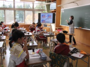 今日は歯科衛生士の方をお迎えして、5年生が歯科保健教室を行いました。