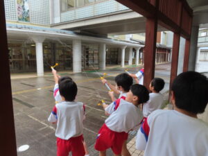また、活動の中で、「どうしたらより遠くに飛ばすことができるだろうか。」と疑問をもち、取り組んでいる子もいました。