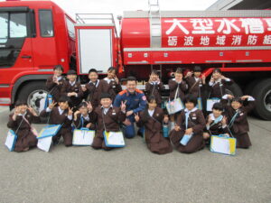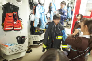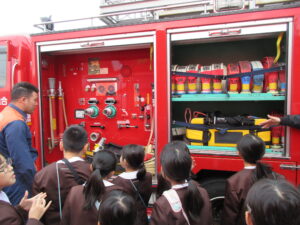 子供たちは、消防署の施設を見たり、緊急車両を詳しく説明してもらったりしました。