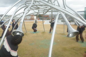 富山県美術館では、常設展や企画展を見学し、オノマトペの屋上で楽しく遊びました。
