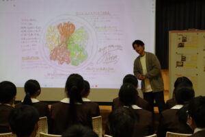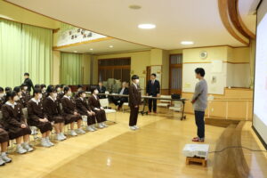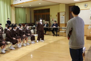 池田航さんが来校しました。以前6年生が委員会ごとに考えプレゼンテーションした給食のメニューから実際に給食で提供される予定のメニューが発表されました。6年生みんなの熱い思いが航さんに届いたようで各委員会の思いを少しずつ取り入れた丼になっていました。今後は航さんが提案してくれた案を基に栄養士が学校給食として提供しやすいメニューに調整する予定です。子供たちは「美味しそう」「早く食べてみたい」と楽しみな様子です。