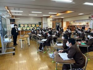 城端中学校から先生にお越しいただき中学校の生活についてお話していただきました。