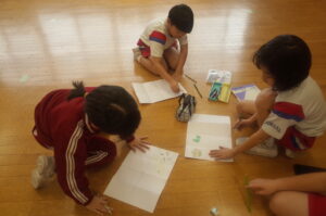 自分たちも、「楽しくギフチョウのことが学べるギフチョウランドを2年生に向けてつくりたい!」と、グループごとに、協力しながら生き生きと活動しています。