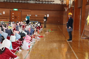 地震が起きたときの身の守り方や避難の仕方を確かめ、安全に避難しました。