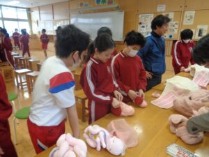 また妊婦体験では、ものを拾ったり、起き上がったりするときに普段と全く違う動きをする友達の様子を見て、妊婦の体の特徴や大変さを理解しました。