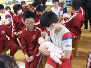 いのちの教育では、助産師の佐藤さん、保健師の小林さんをお迎えして、思春期の体の変化や赤ちゃんの誕生と成長について学びました。