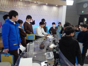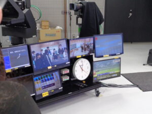 NHK富山放送局では、撮影スタジオに入ってニュースを早く正確に伝えるための工夫を学んだり、カメラ撮影の体験や中継車の見学をしたりしました。