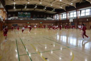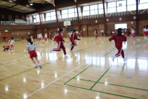 「鬼ごっこ」は鬼を交代しながら、時間いっぱい体育館を走り回りました。