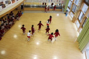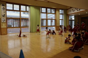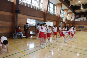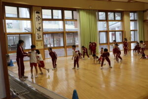 「だるまさんがころんだ」は予想以上の児童が参加してくれ、4グループに分かれて行いました。