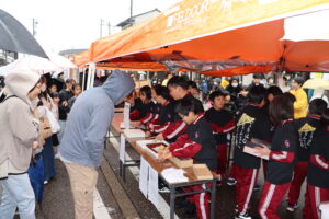 あいにくの雨でしたが、来られているお客さんに、城端の魅力をつたえようと一生懸命に商品を販売しました。