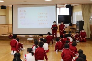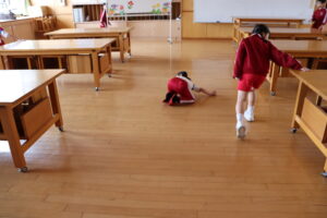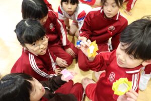【6年生】卒業プロジェクト「宝探し」 2026年3月3日 6年生 今日は1.3年生と一緒に宝探しゲームを行いました。チームを組んで特別棟1階に6年生が隠した折り紙を探しました。「ハートの形だ!」「たくさん見つけた!」と楽しそうに探していました。