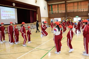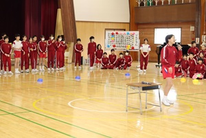 1年生は、6年生と一緒に8の字跳びをしました。2年生は、劇をしました。