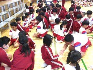6年生は、1年生と一緒に、進化じゃんけんをしました。