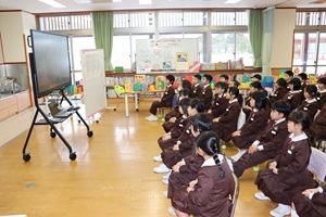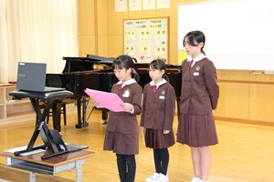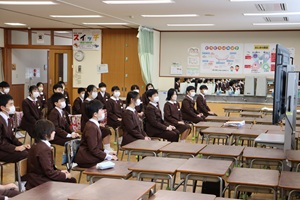 2学期終業式 2025年12月22日 お知らせ・トピックス 12月22日(月)に、2学期の終業式を、感染症拡大予防のため、リモートで行いました。1、3、5年生の代表児童が、2学期にがんばったことや3学期にがんばりたいこと等を発表しました。その後、校長先生の話を聞きました。明日から冬休みです。進んで学習や運動、手伝い等に取り組みましょう。
