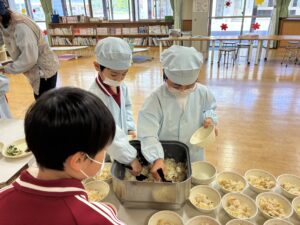 【1年生】学校生活スタート! 2026年4月13日 1年生, お知らせ・トピックス, 学年の部屋 1年生は、学校の過ごし方やきまりについて学習しています。朝の準備や給食は、お手伝いに来てくれる6年生の力も借りながら、少しずつ自分でもできるようになってきました。今日は、初めて制服から運動服に着替えました。休み時間には、粘土遊びやハンカチ落とし、折り紙、読書など思い思いに過ごしていました。